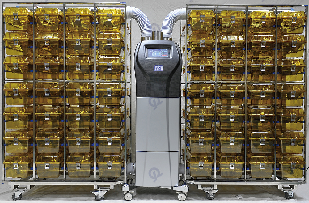 籠具放在潔凈的水平層流空氣中。常用于小規(guī)模飼養(yǎng),但在一般房間進行飼養(yǎng)、操作和處理時有被污染的危險性。可用于半屏障的補充。
