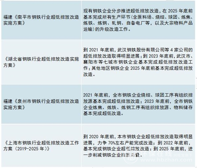 以下是各地方關于鋼鐵行業大氣污染物排放標準、改造計劃等政策方案匯總: