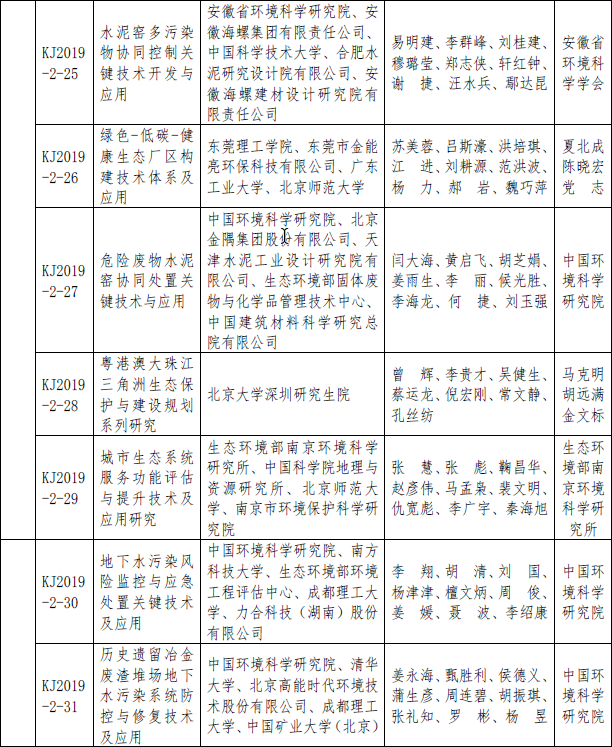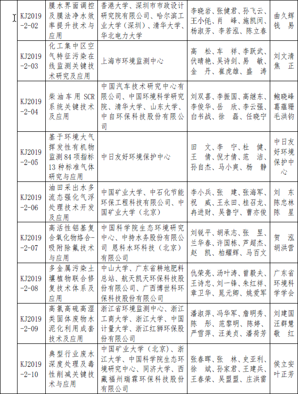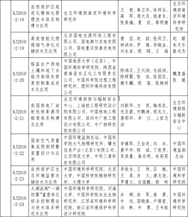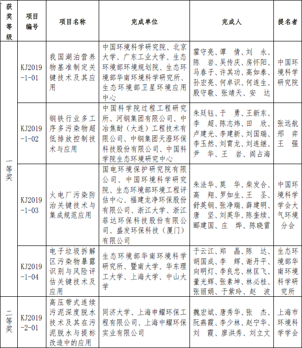 2019年度環(huán)境保護(hù)科學(xué)技術(shù)獎(jiǎng)擬授獎(jiǎng)項(xiàng)目名單公示