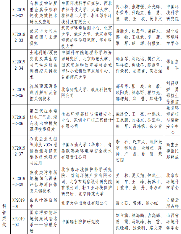 附:2019年度環(huán)境保護(hù)科學(xué)技術(shù)獎(jiǎng)擬授獎(jiǎng)項(xiàng)目名單