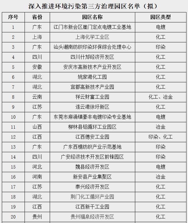 附件:深入推進環境污染第三方治理園區名單(擬)