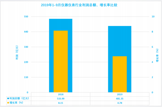 近日,上海行業協會發布了2019年1-9月儀器儀表行業經濟運行概況。1-9月儀器儀表行業實現利潤總額481.35億元,同比增長4.78%;利潤凈增21.95億元,比上年的40.24億元減少45.46%。