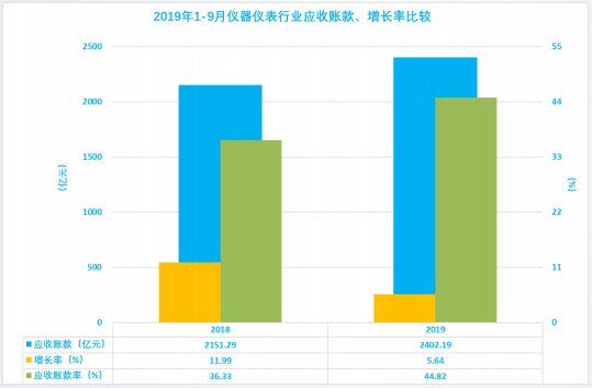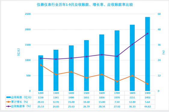 2.9 儀器儀表行業歷年1-9月應收賬款、增長率、應收賬款率比較