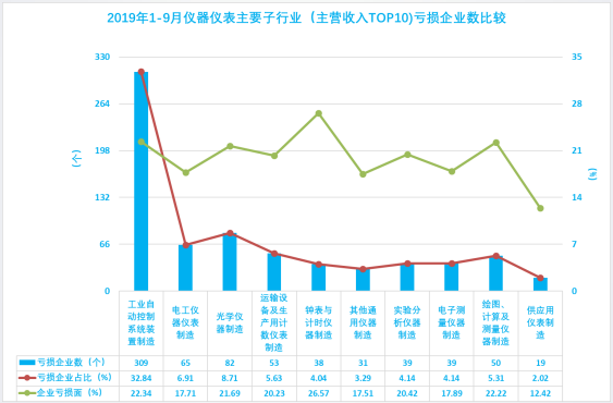 1.19 2019年1-9月儀器儀表主要子行業(主營收入TOP10)虧損額比較