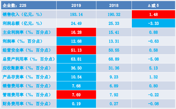 11個經濟運行指標中:銷售收入、利潤總額、主業利潤率、經營安全率、應收賬款率、產品存貨率和管理費用率好于上年同期;其余4個指標差于上年同期。