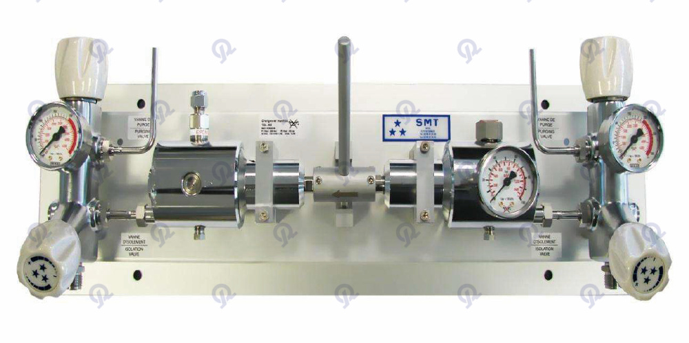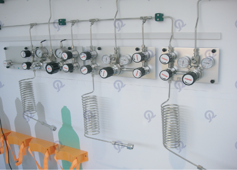 3、終端部分:儀器前配置截止閥和二級(jí)減壓器等,可以制作氣路的開(kāi)關(guān),精確調(diào)整和顯示氣體壓力。